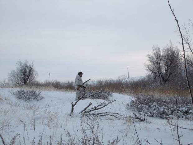 Там поднимается один косой,но уходит между нами. Напарник делает два выстрела.Мимо. Слишком далеко. Предлагаю сделать загон в заброшенных базах(как раз туда уходили два из трех косых которых поднял напарник).