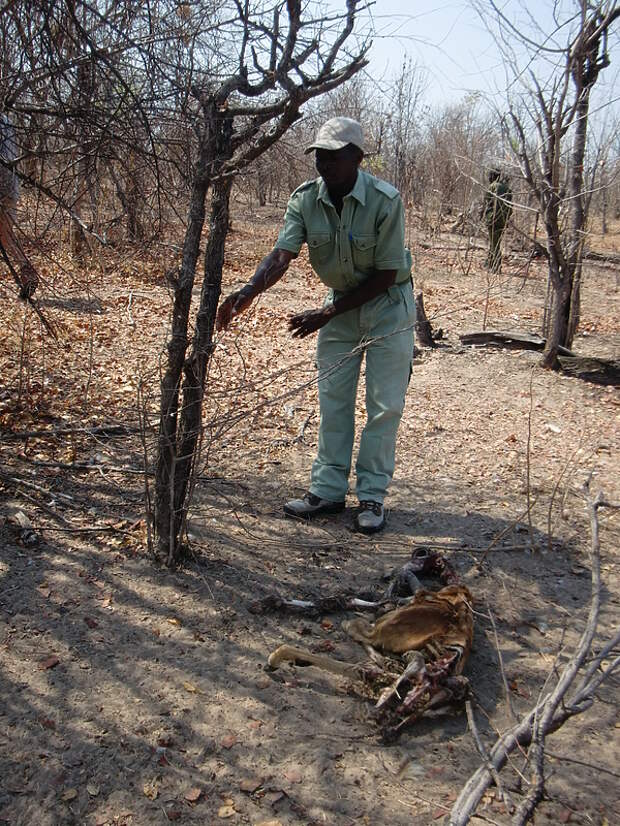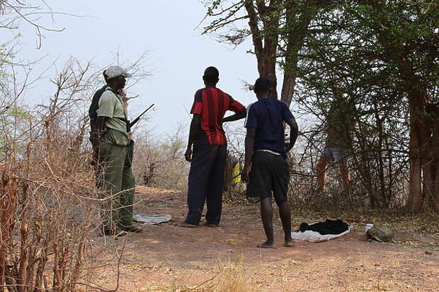 Так, с привлечением ресурсов охотничьей команды снимаются обнаруженные проволочные петли, установленные браконьерами, конфискуются орудия браконьерства и незаконно добытые рыба и мясо, самих нарушителей арестовывают и доставляют в полицию, то есть проводится методичный мониторинг состояния охотничьей территории за счет клиента-охотника. Возможно, в частных угодьях этот процесс носит несколько иной характер, но на государственных землях и территориях, где действует программа Campfire, дело обстоит именно так.
