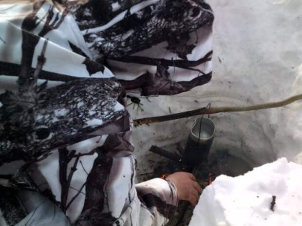 Обошёл я её кругом, поднялся на соседнюю, смотрю, а там мишка берлогу обустраивает, фыркает, копает, то залезет в неё, то вылезет, короче, занят по уши. Так, думаю, надо место запомнить, а глазу даже зацепиться не за что, одна ольха и берёза и всё однообразное, смотрю, не далеко от берлоги кустик стланика растёт - вот, это и будет мой ориентир. Естественно, подходить ближе не стал, потому что если медведь заподозрит что-то не ладное, сразу уйдёт и больше не появится, очень тихо вернулся на путик и продолжил своё занятие. Наступила зима. Приехал ко мне старый друг из Хабаровска. В процессе беседы выяснилось, что он уже давно мечтает на берлоге поохотиться, а тут у меня как по заказу есть одна на примете. В общем, собрались, поехали. Доехали до зимовья, обустроились и решили в этот же день сходить посмотреть, от зимовья до берлоги 20 минут ходу было. Перекусили, пошли. Подходим к этой сопке, а там зимой пейзаж другой. Снега всего метр, а изменилось всё до неузнаваемости, моего ориентира и след простыл, завалило и сравняло, как будто и не было. Начали искать, истоптали весь склон - никаких признаков жизни, хоть бы испарина из чела шла - нет ни чего... Устали, намаялись, решили чаёк по-быстрому вскипятить в небольшом котелочке и до темноты ещё поискать. Выкопали до земли яму, пару метров в диаметре, с краю развели костерок, а сами положили лыжи и на них начали расставлять кружки, сахар, пряники... Слышу, товарищ мой говорит " Вот мыши у вас в лесу наглые, не успели костёр развести и продукты достать, как они уже тут, как тут... уже норку копают..." Смотрю, а в снежной стенке, под которой горел костерок, отверстие и из него снег вылетает. " Щас я эту мышку угощу"- говорит мой друг, замахиваясь хворостиной. И тут, подтаявший снег обваливается и вырисовывается чёрный пятак медвежьего носа, с шумом втягивающий запах костра и двух истуканов... Как-то очень быстро, после секундного оцепенения, мы схватили карабины и выстрелили... Хорошая была охота. Запоминающаяся.