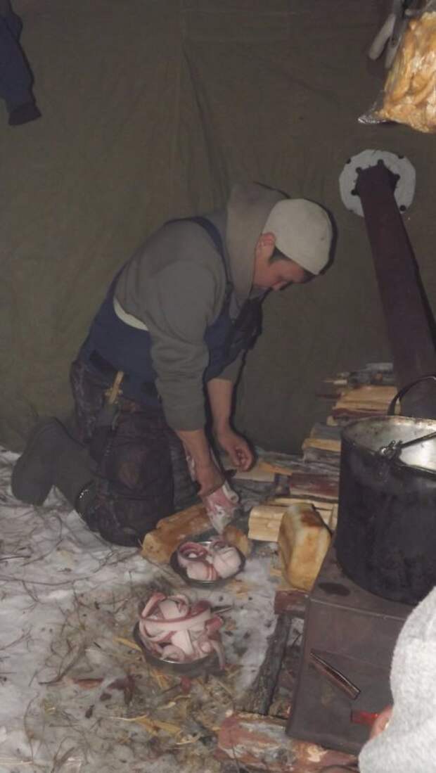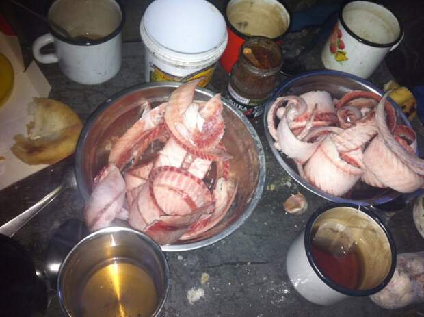 Готовим ужин - строганину из ленка